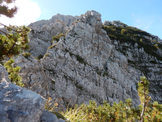 Ko prideš čez prvo direktno steno, se potem več ali manj držiš grebena, vijugaš levo, desno, sem in tja tudi strmo navzgor. Precej divje, razbrazdano, vsak meter drugače, prav nič dolgočasno. Predvsem pa lepo.