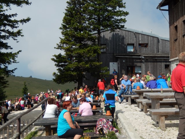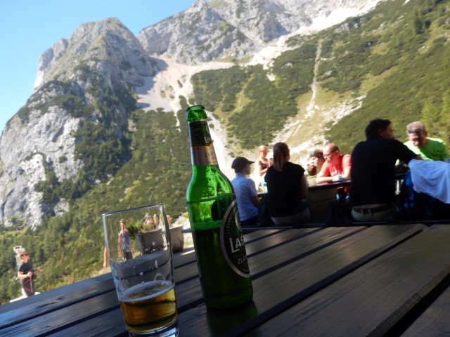 Pri koči smo nato komaj dobili prostor taka gneča je bila. A nam je bilo popolnoma vseeno, žeja je naredila svoje, čeprav je pivo po 3€. Ko bi vsaj kaj od tega zneska šlo v markiranje in nadelavo poti...