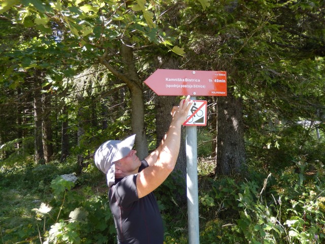 Kako se ljudje lahko tu izgubijo, mi ni povsem jasno, na drugi strani poti je še stara tablica in polno markacij, a smo namestili še drog z novo tablico, ko so se pred leti tule izgubili neki Nizozemci. Pa tudi to ni dovolj. Glavno vprašanje tu je: kaj pa bilo dovolj? Ok, saj razumem, se zaklepetaš in kar naenkrat ni več poti, se je že večkrat zgodilo, ohoho, tudi meni. A kako urediti odcep, ko pot zavije z neke druge dobro uhojene poti/ceste, da bi preprečili, da ljudje tega ne opazijo? Nisem povsem siguren, da se to sploh da.