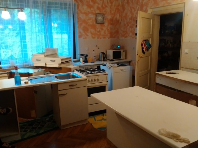 Lani je bila na vrsti kuhinja. Smo jo podedovali že z nakupom in že takrat je bila, no, hm, stara. Po še dodatnih štirinajstih letih pa sploh.