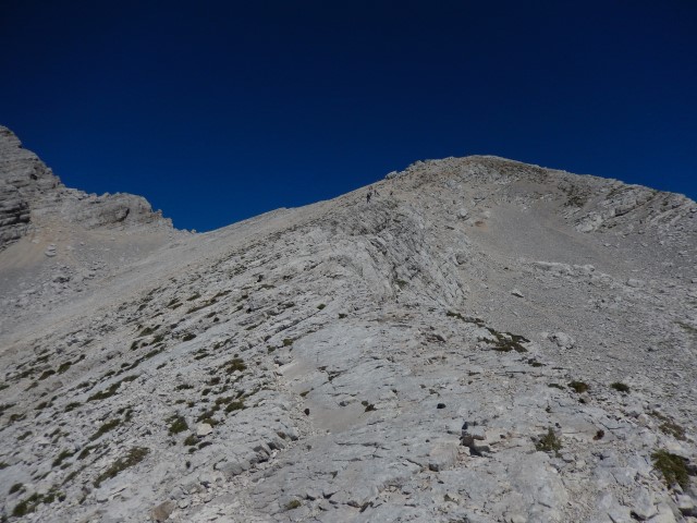 Tako pa nam je na poti do sedla že sonce žgalo telesa. A smo vedeli, da ne bo dolgo hudo, severne stene so še kar nekaj časa v senci.