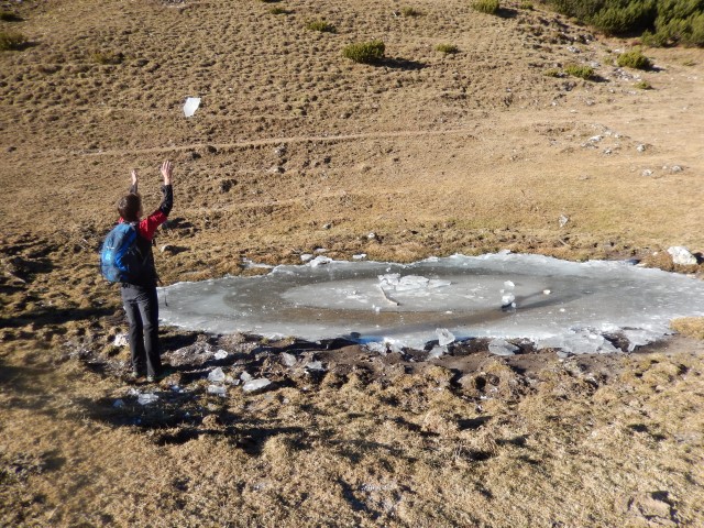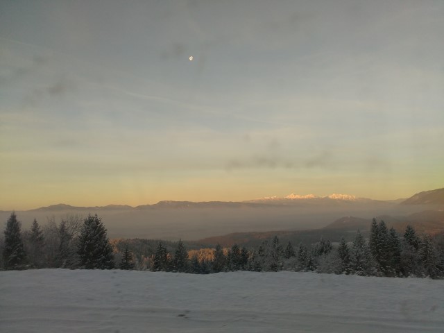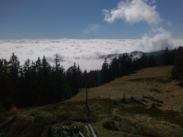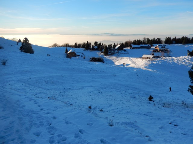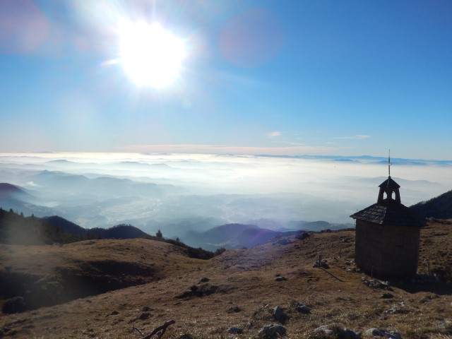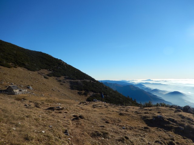 V dolini megla, mraz, a vsaj snega ni bilo. V hribih tudi nobenega snega, zaradi inverzije je bilo tudi dosti bolj toplo.