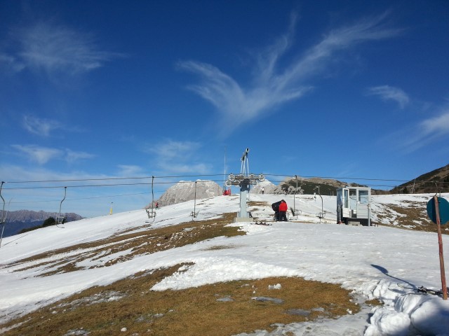Pa k sreči je, veter je sicer bil, a ne tiste smeri, ki škodi vožnji gondole. V dolini pa je bilo malce bolj znosno.