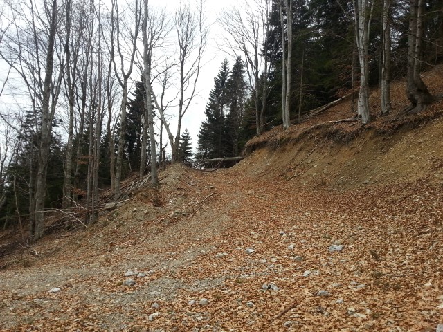 Na koncu sva jo mahnila navzdol kar počez (pri tem pa sva seveda našla tudi pot, ki sva jo na poti navzgor izgubila!), da ne bi spet motila žage, a ker sta v sozvočju naokoli peli kar naenkrat dve žagi, sva jo morala urezat nekje vmes. In nama je uspelo.