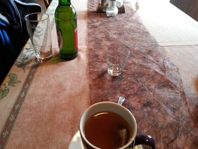 Je bil pa travnik. O, ja. No, tu sva že bila, pri koči z najhitrejšim kuhalnikom se tokrat nisva ustavila. Pivo nama po naporni noči ni nič kaj dišalo!