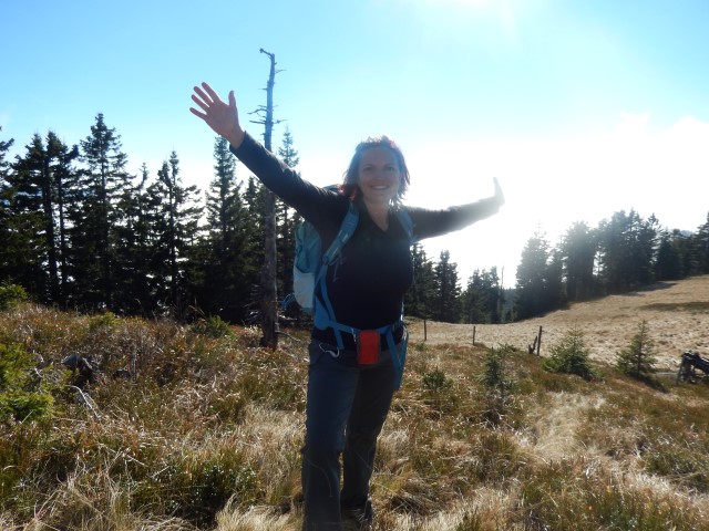 Kakšne velike vročine seveda ni bilo, a vseeno bolje, kot v dolini. Brez tiste vlažne meglene zdrizavosti.  Mraz nas je vseeno pregnal naprej. Do Kompotele in razgledov!