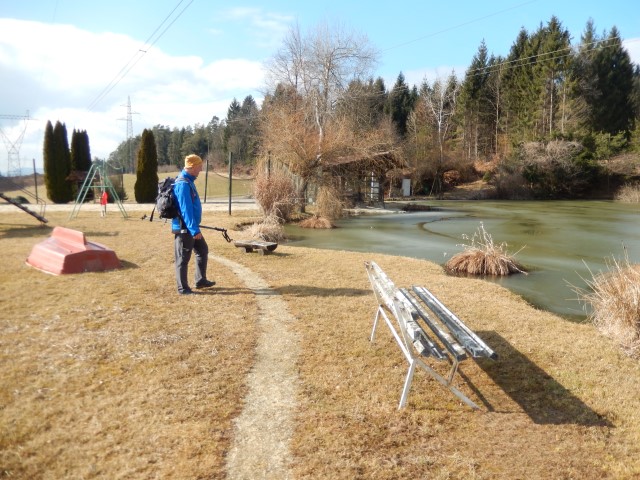 Tako sva sploh prvič prišla do bajerja pri Prevojah, kar lepo imajo tule urejeno. Še malo je bilo zamrznjeno.