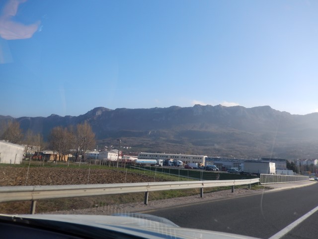 Pa ravno na burjo... tega sploh nisva pogledala. In kar naenkrat, že na avtocesti, se pojavi znak, da pa je cesta zaprta za hladilnike in ponjave. Kaj? Kako? Zakaj neki pa? Kakšna burja neki? Od kje? Saj je tudi na celini lepo, sončno, povsod je lepo vreme, zakaj neki bi morala biti pa na vipavskem burja? To se je nekdo zmotil, to naju samo nekdo heca!