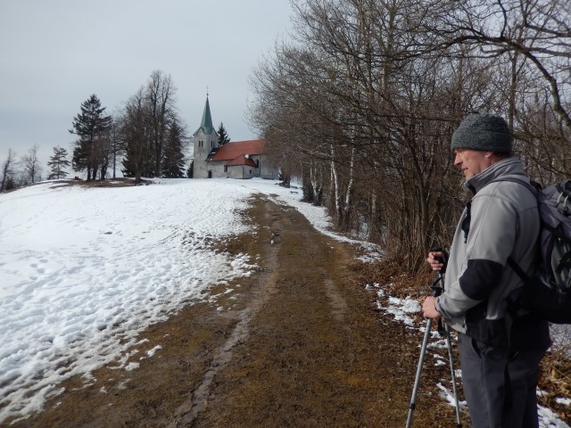 Proti Osolniku je šlo ok, sva pa vedela, da naju gor do cerkvice najbrž čaka še precej dober vzpon. Se ga spomnimo z nekega od trekingov, ko smo z druge strani kar direkt čez trave gor hiteli. Ah, tista mladost!
