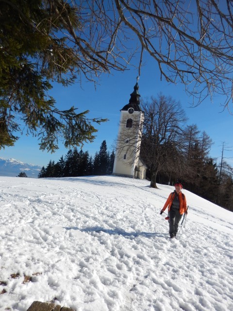 Do Sv. Ožbolta je snežna odeja kar rasla. A se nisva veliko sekirala.