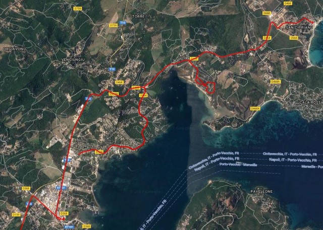 Tista glavna cesta do Ajaccia je bila potem presneto dolgočasna in meni še bolj naporna, kot tista po severozahodni obali. Cesta je namreč širša, a ovinkov ni skoraj nič manj, pa se predvideva, pa hitreje voziš, ampak to ni najlažje. In se potem vleče in vleče. Večinoma so povsod gozdovi, vreme je bilo bolj slabo, kakšnih visokih hribov pa nikjer in nam zato ni bilo najbolj povšeči.