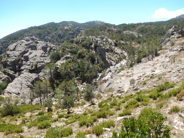 Z nje je pa lep razgled na vse okoliške vrhove, čeprav se tistih višjih ne vidi. Zaslutiš pa doline, ki se vijejo v osrčje gora - Restonica, Tavignano, Golo.