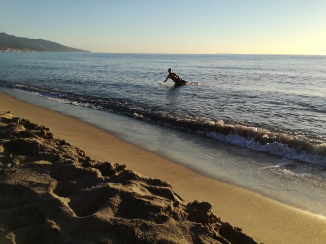 In izkoristili ostanek dneva za kopanje na naši plaži. Vreme se je nekaj kisalo, a kopat se je dalo povsem lepo. Brez meduz tudi tokrat.