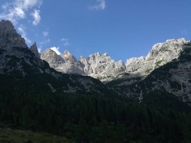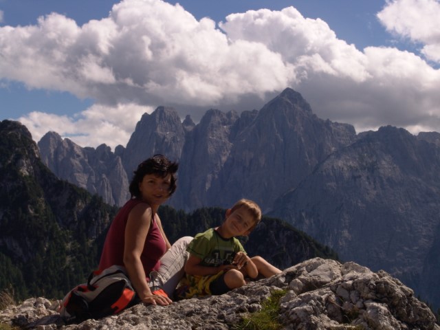 Oh, razgledi, razglediiiiiiiiii! Sva že kar visoko nad Corsijem! Cela skupina Kanina na drugi strani kanalske doline.