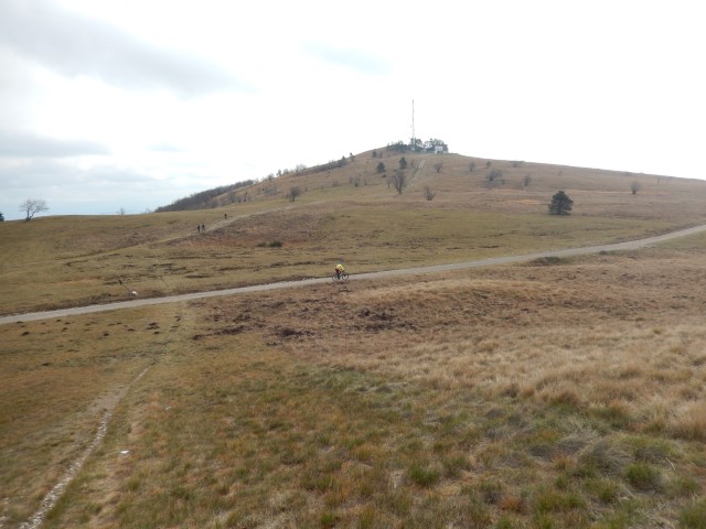Vrh pa tudi ni več daleč. Nam je najbrž lažje, kot kolesarju. Ampak kdo bi vedel, kolesarji so itak norci, a ne?