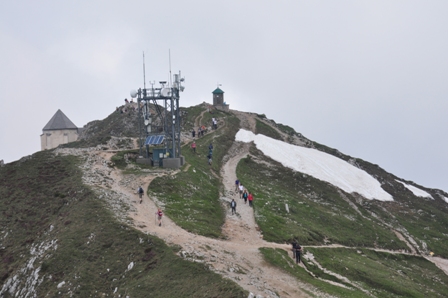 Oblečem si jakno, ves sem premočen, na vrhu pa končno le malce pihlja! Končno malce osvežujočega! Si kar ne morem mislit, sredi junija na 2500 metrih pa takale vročina...