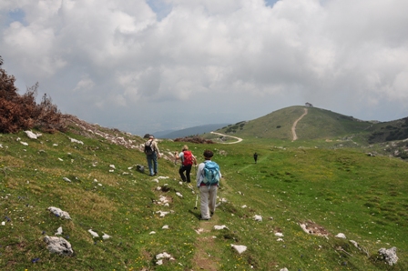 Tam nekje na sredi tiste neznansko dolge prečke srečamo Slovake. Gredo peš proti vrhu. Ura 11h. Ojej, tole pa bo še veselja, si mislim in jim tiste vročine in še dolge poti prav nič ne privoščim!