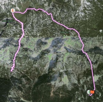 Medtem ko grem gor samo in samo po asfaltu in po vseh ovinkih, gre dol povsod tam, kjer se da. Torej sekanje ovinkov, planinska pot in sploh vsaka bližnjica, ki se jo da izbrati! Pa sem kljub temu, da že točno vem za skoraj vse finte, spet zgrešil dve bližnjici. Nikakor ne bi spet rad pristal v Krnici...