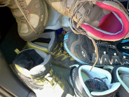 S seboj smo vzeli boga in pol, kot ta pravi hribolazci pa seveda nismo pozabili niti gojzarjev. O, ne!