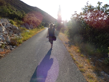 Mene sicer vročina ne moti toliko, Helena ima po parih urah hoje že vsega vrh glave! Tudi vode nam počasi zmanjkuje pa smo jo trogali gor kar dobro količino. Še pametno!